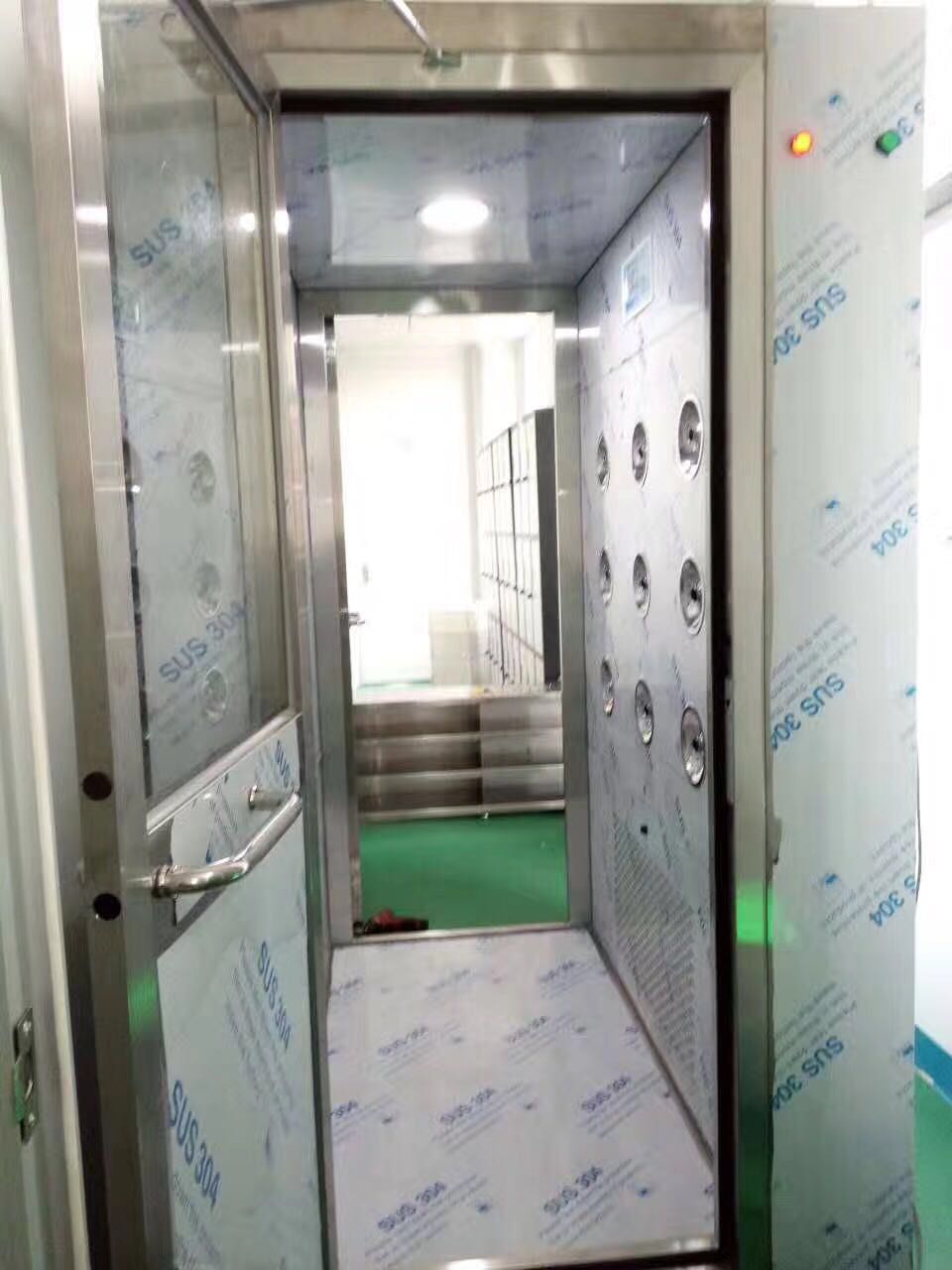 主要用于檢測生產車間的人員通道,此次訂制的雙人雙吹風淋室,采用201不銹鋼材質,一次性可以容納4個人,雙側24個噴嘴吹風,出風風速25m/s,保證了吹淋效果。
