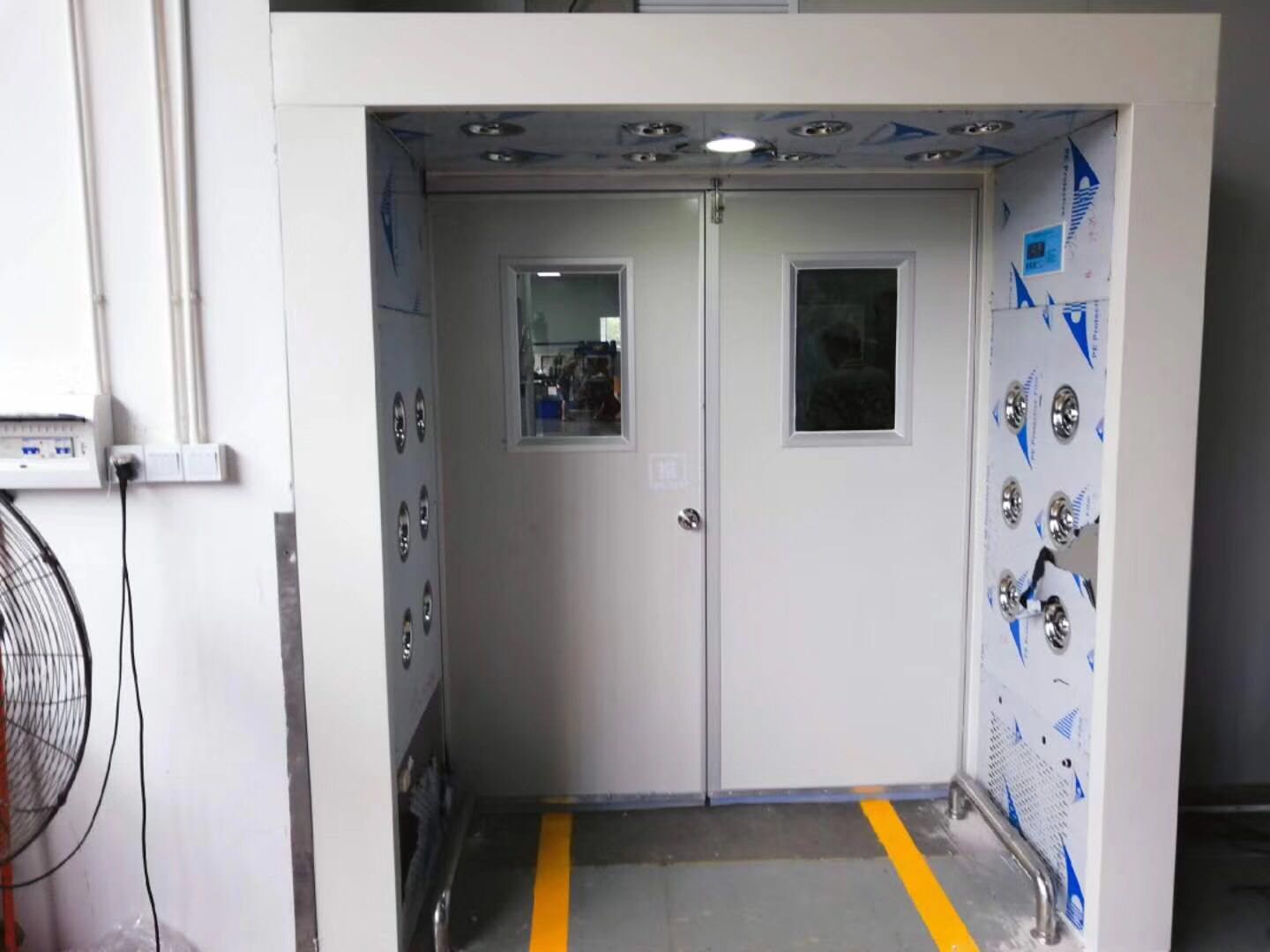 廣州歐立機電有限公司本次的風淋室工程沒有門的三吹通道,帶防撞欄。