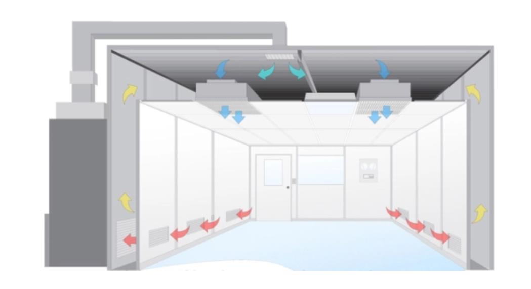 在垂直流系統(tǒng)中,氣流是從吊頂流向地上。對要求潔凈室的懸浮粒子濃度或微生物濃度更低的場合,就運(yùn)用單向氣流。從前稱這類潔凈室為"層流"潔凈室。單向流和層流的名稱均說明晰其氣流的狀況:氣流以一個方向活動(或是垂直的或是水平的)。