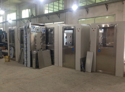 風淋室是人員進入潔凈室無塵車間所必備的凈化設備,通用性強,可與所有的潔凈室和潔凈廠房配套使用,工作人員進入車間時,必須通過此設備,用強勁潔凈的空氣,由可旋轉噴嘴從各個方向噴射至人身上,有效而迅速清除去附著在衣服上的灰塵、頭發、發屑等雜物,它可以減少人進出潔凈室所帶來的污染問題。風淋室的兩道門電子互鎖,可以兼起氣閘室的作用,阻止外界污染和未被凈化的空氣進入潔凈區域。杜絕工作人員將頭發,灰塵、細菌帶入車間,達到工作場地嚴格的無塵凈化標準,生產出高質量的產品。