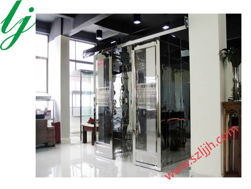 鏡面不銹鋼自動門貨淋室是貨物進入潔凈室所必需的通道,它可以減少貨物進出潔凈室所帶來的污染問題。自動門貨淋室的兩道門電子互鎖,可以兼起氣閘室的作用,防未被凈化的空氣進入潔凈室,高科技智能語音貨淋室帶有語音提示系統,在吹淋時由自動語音系統提示,人性化語音提示給人一種親切感覺,并達到有效的凈化效果,經高效過濾器過濾后的潔凈氣流由可旋轉噴嘴從各個方向噴射至物體表面,有效而迅速清除塵埃粒子,帶有塵埃粒子的空氣再由初、高效過濾器過濾后重新循環到風淋區域。