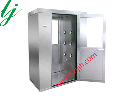 風淋室是人員進出潔凈室所必須的通道,并同時起到閘室密閉潔凈室的作用,是進行人員凈化和防止室外空氣污染潔凈區的有效設備。 為了減少由于人員進出所帶來的大量塵埃粒子,經高效過濾器過濾后的潔凈氣流由可旋轉噴嘴從各個方向噴射至人身上,有效而迅速清除塵埃粒子,清除后的塵埃粒子再由初、高效過濾器過濾后重新循環到風淋區域內