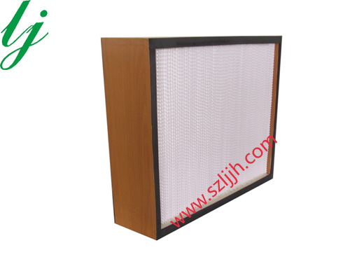 紙隔板高效過濾器使用隔板式設計,波紋型隔板可以精確地保持這層間距,有最小阻力下,最大限度地利用濾料,過濾器濾材兩面180褶翻折形成契型褶層,濾料折彎時有兩道壓痕,使其在隔板的末端開成契型盒式褶層,這樣可以防止濾料破損,在腐蝕的環境中,可以使用鍍乙烯鋁隔板,捕捉0.3UM粒子效率99.99%