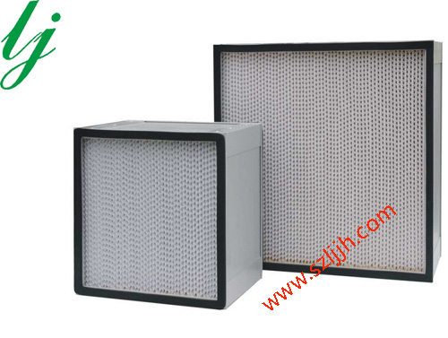 鋁隔板高效過濾器過濾效率≥99.9%~99.999%@≥0.5μm(鈉焰法)或歐洲標準H12—H14。外框為:夾層木板、鍍鋅板、鋁型材、不銹鋼板;