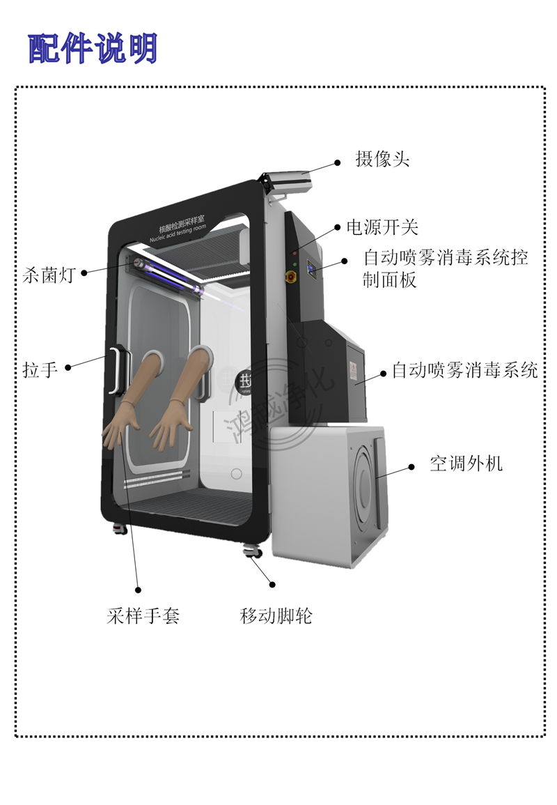 1.機身:采樣室兩側面、頂部、底部均為冷軋鋼板,表面烤漆;內部采用不銹鋼板