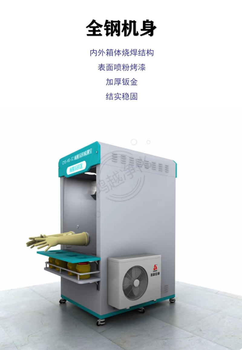 1.機身:采樣室兩側面、頂部、底部均為冷軋鋼板,表面烤漆;內部采用不銹鋼板